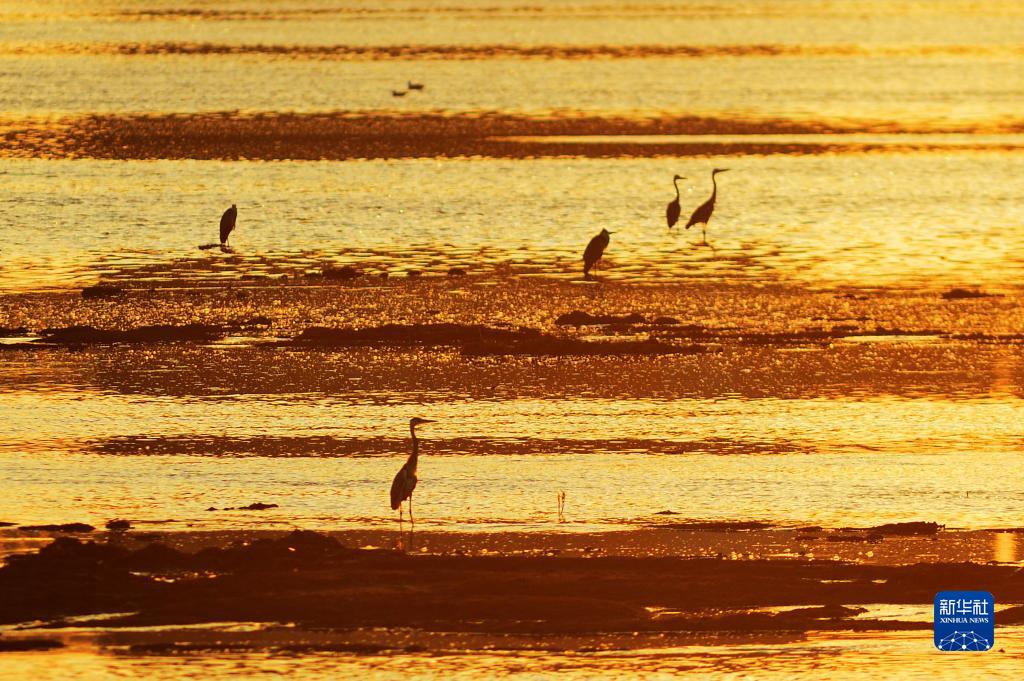初秋時(shí)節,位于山東省青島市城陽(yáng)區流亭街道的墨水河入??跐竦赝硐寂?,蒼鷺、白鷺等水鳥(niǎo)覓食棲息,呈現一幅美麗的生態(tài)畫(huà)卷。