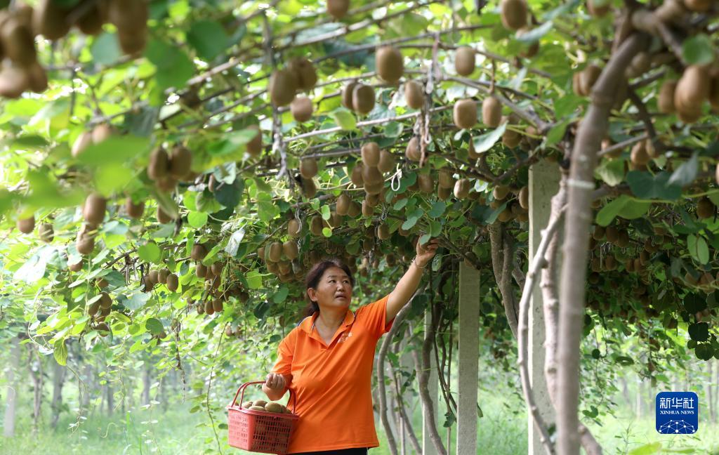 9月5日,農戶(hù)在河北省石家莊市行唐縣龍州鎮獼猴桃種植基地采收獼猴桃。