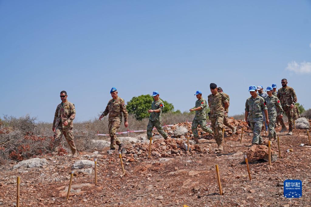9月4日,聯(lián)合國駐黎巴嫩臨時(shí)部隊(聯(lián)黎部隊)西區司令喬瓦尼·布拉法準將(左二)進(jìn)入黎巴嫩南部“藍線(xiàn)”附近的中國第21批赴黎維和部隊任務(wù)雷場(chǎng)。