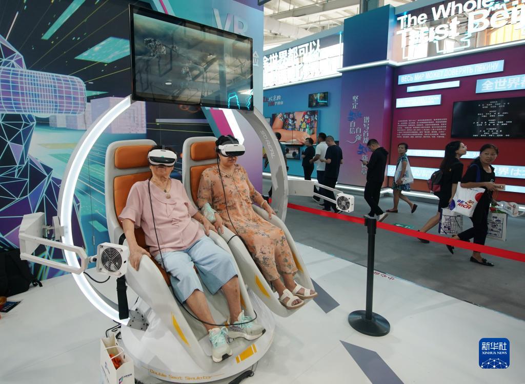 9月5日,參觀(guān)者在服貿會(huì )首鋼園區的文旅服務(wù)專(zhuān)題展內體驗一款VR觀(guān)影設備。