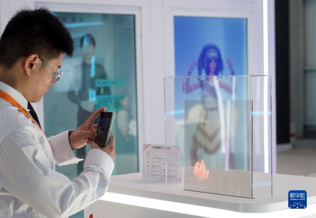 9月5日,一名男子在服貿會(huì )首鋼園區拍攝一款透明LED顯示產(chǎn)品。