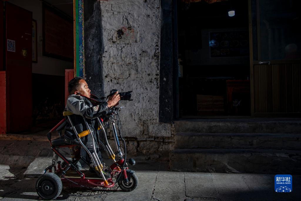 2017年,拉巴頓珠進(jìn)入拉薩市殘疾人托養中心生活,日子過(guò)得安定有保障,但他說(shuō):“我還年輕,我也有夢(mèng)想,我想靠自己的勞動(dòng)養活自己?!?托養中心為殘疾人開(kāi)設了多種課程,拉巴頓珠選擇了自己最感興趣的攝影和視頻制作。2021年,他離開(kāi)托養中心,找到肢體殘疾的創(chuàng )業(yè)者覺(jué)列,到其開(kāi)辦的文化傳播公司負責攝影和視頻制作,開(kāi)始了自食其力的生活。