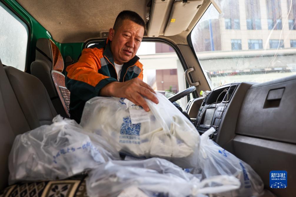 9月5日,在文登區人民醫院醫共體中藥配送中心,物流人員在整理即將配送的中藥。