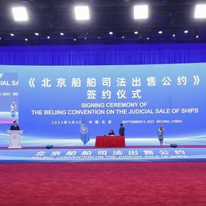 9月5日在北京拍攝的《北京船舶司法出售公約》簽約儀式現場(chǎng)。