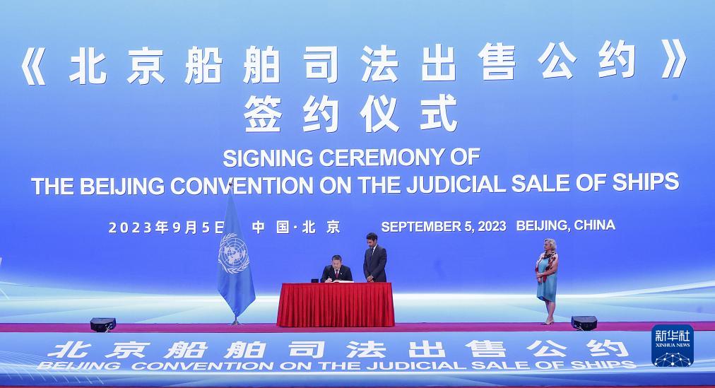 9月5日,新加坡代表在《北京船舶司法出售公約》簽約儀式上簽字。