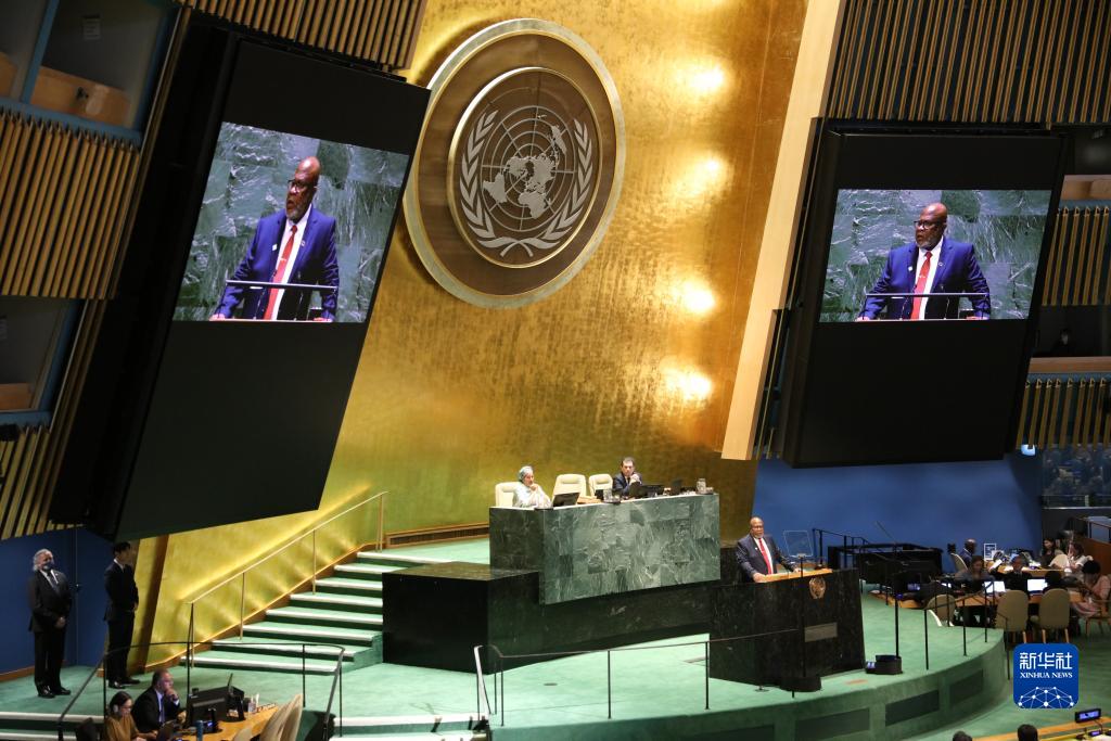 9月5日,在位于紐約的聯(lián)合國總部,第78屆聯(lián)合國大會(huì )主席丹尼斯·弗朗西斯在新一屆聯(lián)大第一次全會(huì )上致辭。
