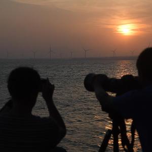 9月5日,游客在河北省張家口市懷來(lái)縣官廳水庫拍攝日落。