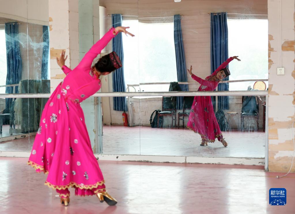 在新疆塔什庫爾干塔吉克自治縣帕米爾旅游區游客服務(wù)中心,縣文工團演員在演出前做準備(9月4日攝)。