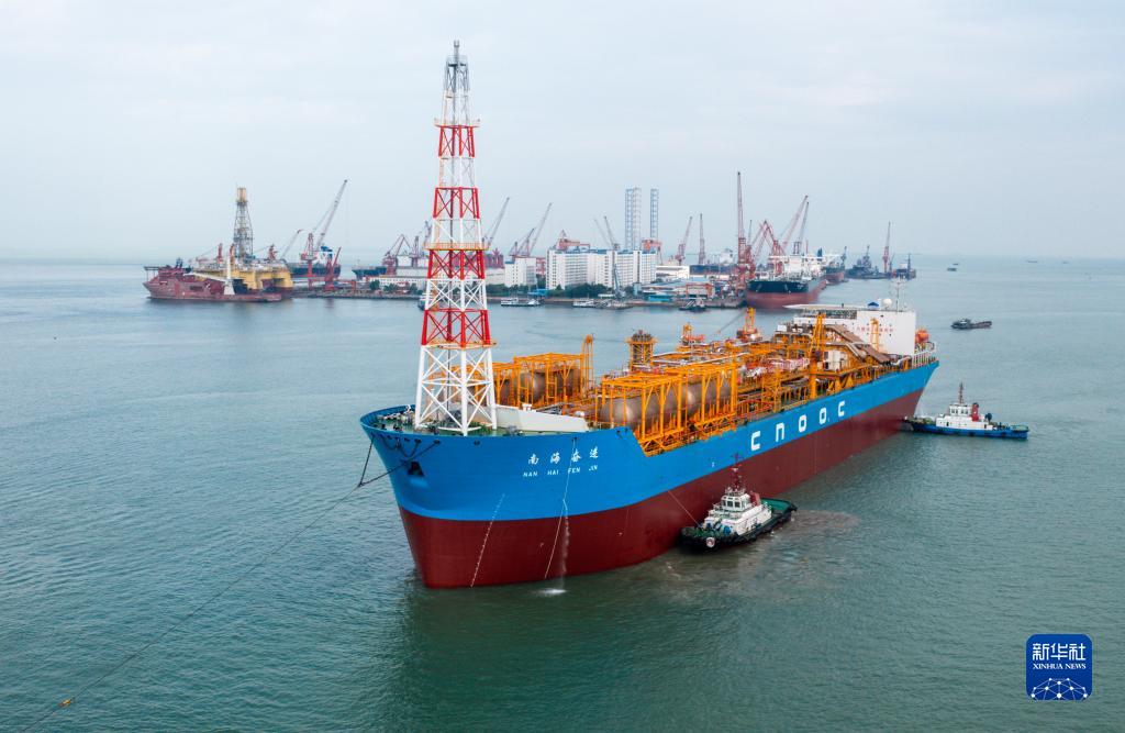 9月6日,在深圳孖洲島旁,“南海奮進(jìn)”FPSO離開(kāi)友聯(lián)船廠(chǎng)(無(wú)人機照片)。