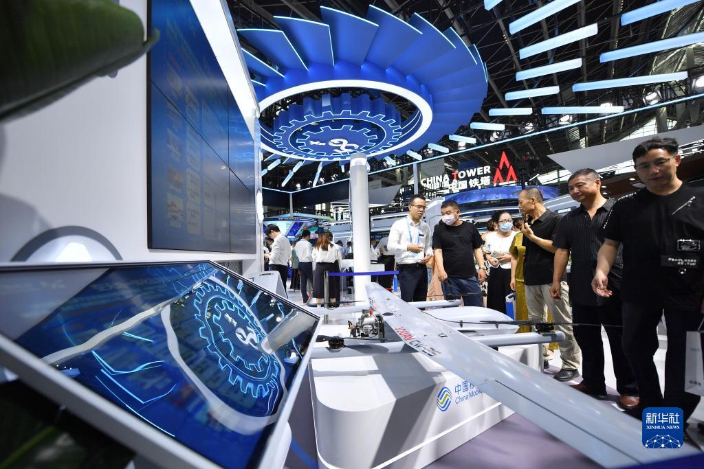 9月6日,在2023中國國際數字經(jīng)濟博覽會(huì )上,工作人員向參觀(guān)者介紹空天地一體化應急通信保障體系。