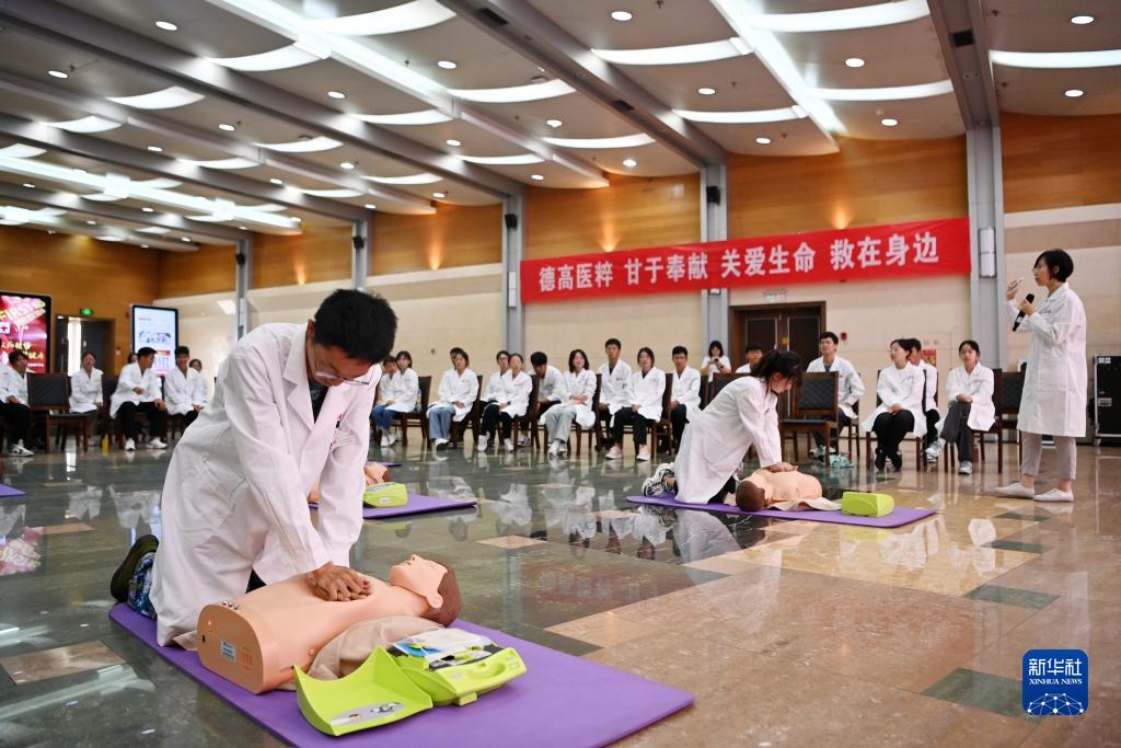 9月6日拍攝的天津醫科大學(xué)2023級新生急救知識與技能培訓現場(chǎng)。
