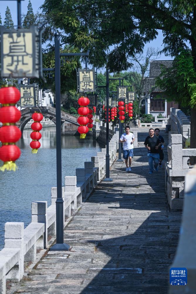 9月6日,慢跑愛(ài)好者在湖州市吳興區織里鎮組團跑步。