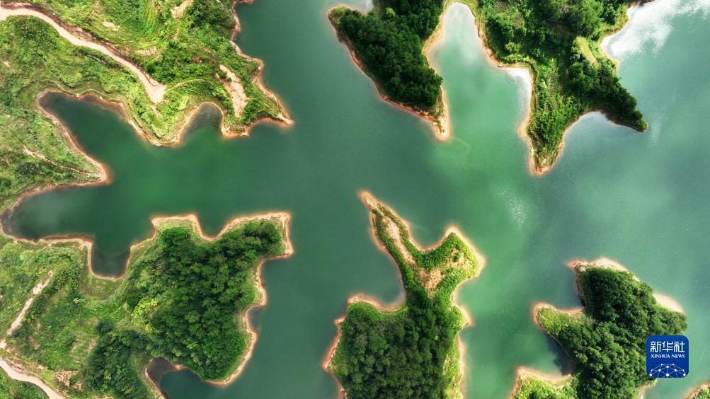 9月6日拍攝的貴州省黔東南苗族侗族自治州黃平縣舊州鎮?陽(yáng)湖畔美景(無(wú)人機照片)。