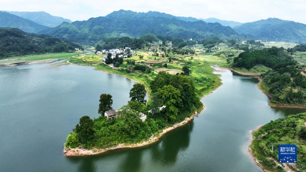 9月6日拍攝的貴州省黔東南苗族侗族自治州黃平縣舊州鎮?陽(yáng)湖畔美景(無(wú)人機照片)。