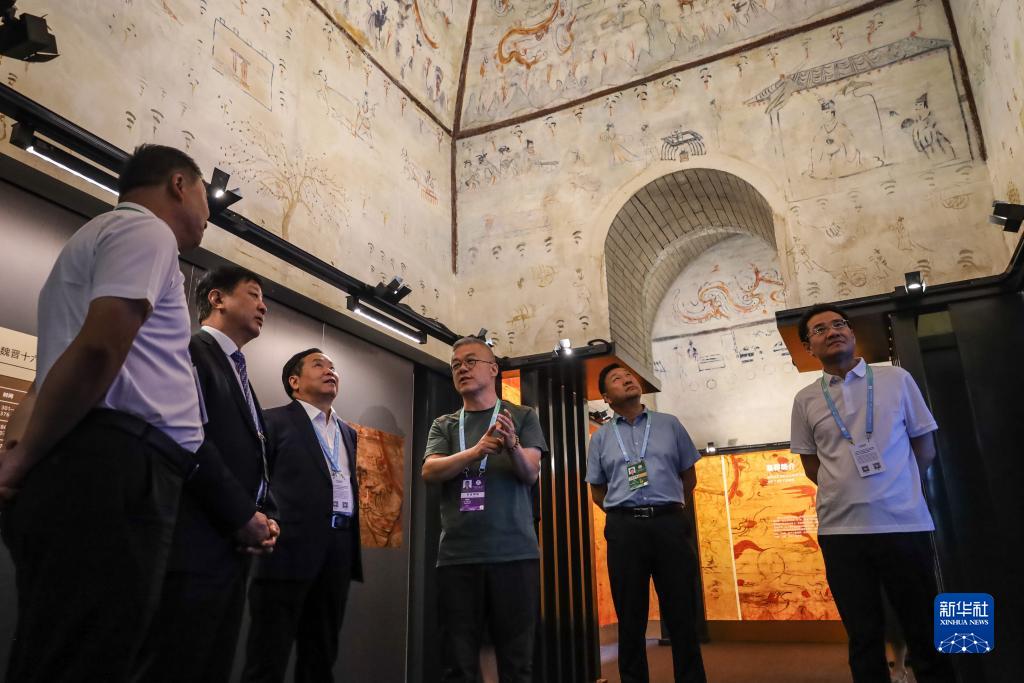 9月6日,與會(huì )嘉賓在第六屆絲綢之路(敦煌)國際文化博覽會(huì )上參觀(guān)酒泉魏晉壁畫(huà)墓復制展。