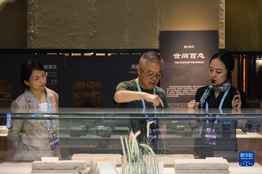 9月6日,與會(huì )嘉賓在第六屆絲綢之路(敦煌)國際文化博覽會(huì )上參觀(guān)酒泉魏晉壁畫(huà)墓復制展。