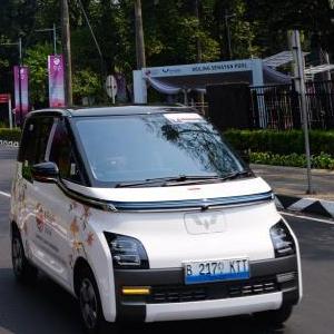 9月6日,在印度尼西亞雅加達,一輛五菱新能源車(chē)Air ev行駛在第43屆東盟峰會(huì )會(huì )場(chǎng)附近。