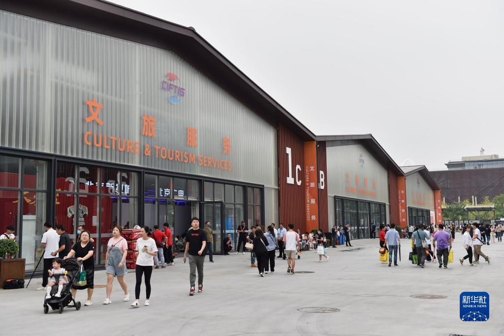 9月2日,在服貿會(huì )首鋼園區,觀(guān)眾經(jīng)過(guò)文旅服務(wù)展區。