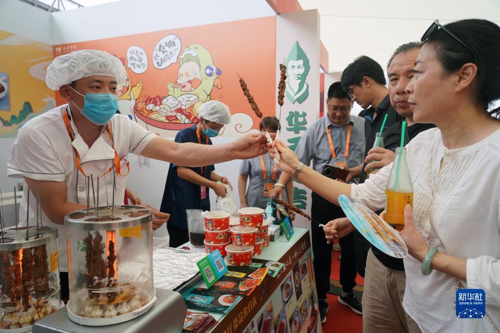 9月6日,觀(guān)眾在服貿會(huì )北京老字號創(chuàng )新發(fā)展體驗區品嘗美食。