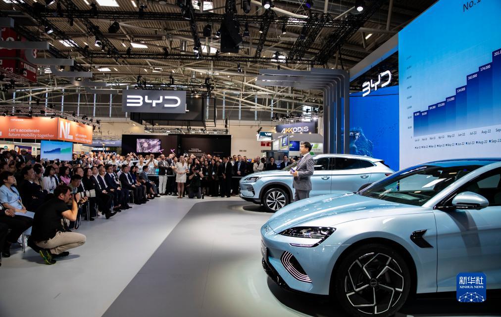 2023年德國國際汽車(chē)及智慧出行博覽會(huì )(慕尼黑國際車(chē)展)5日在慕尼黑開(kāi)幕。據了解,相比上一屆博覽會(huì ),包括比亞迪、零跑、小鵬、商湯科技等在內的中國展商的數量今年翻了一番。