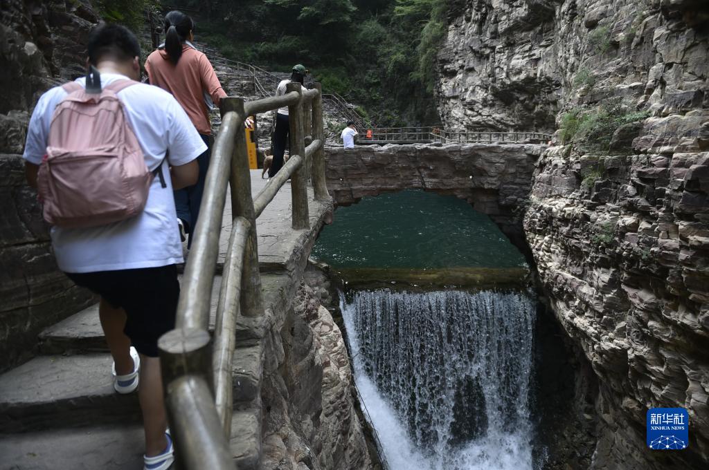 9月6日,游人在太行大峽谷中游覽。