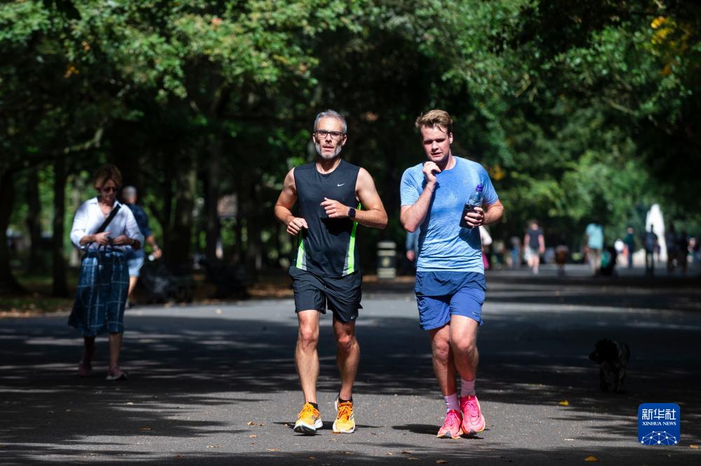 9月6日,兩名男子在英國倫敦攝政公園內慢跑。