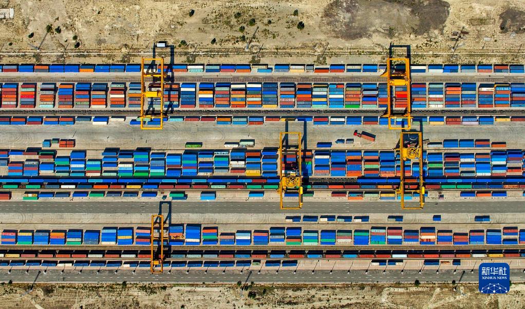 9月6日拍攝的霍爾果斯站換裝庫(無(wú)人機照片)。