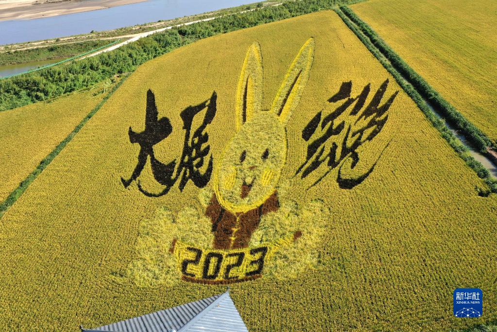 這是9月6日拍攝的臺安縣遼河文化旅游景區里的稻田畫(huà)(無(wú)人機照片)。