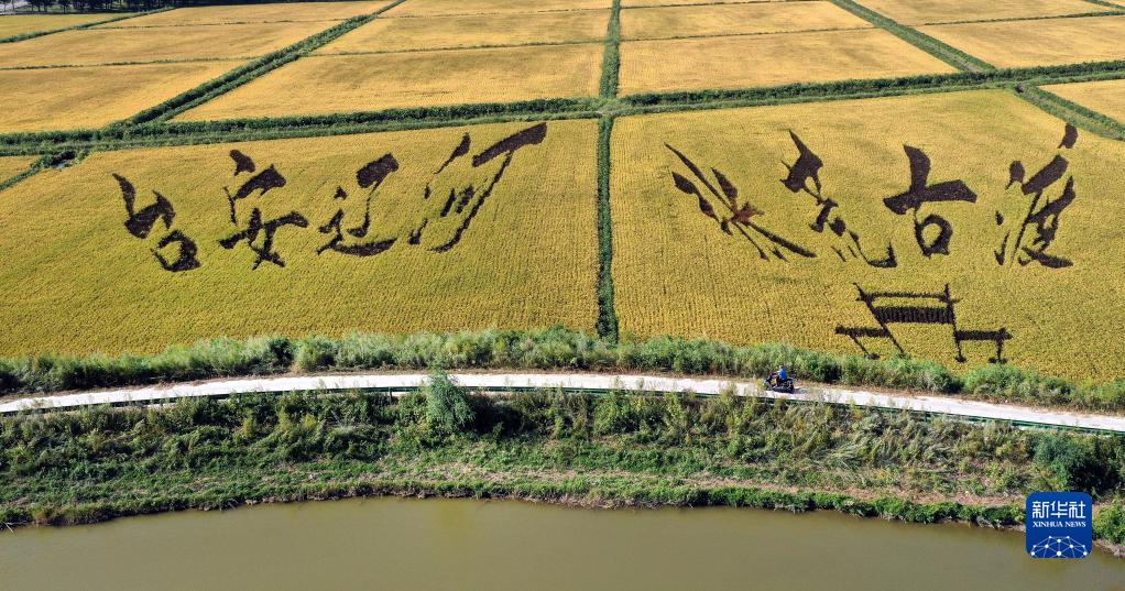 初秋時(shí)節,遼寧省鞍山市臺安縣遼河文化旅游景區的稻田畫(huà)吸引不少游客前來(lái)參觀(guān)游覽。由多種顏色組成的巨型稻田畫(huà)勾勒出豐收壯美景象。