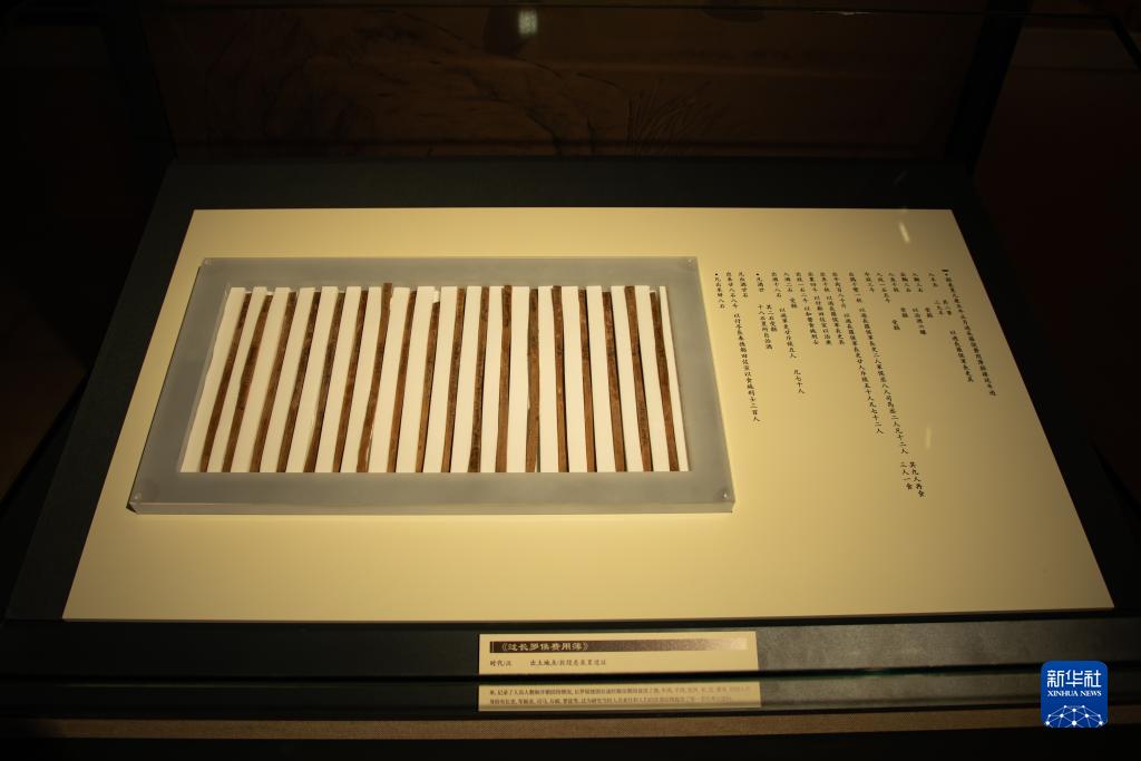 這是9月7日拍攝的甘肅簡(jiǎn)牘博物館展出的由18枚簡(jiǎn)牘組成的“過(guò)長(cháng)羅侯費用薄”。