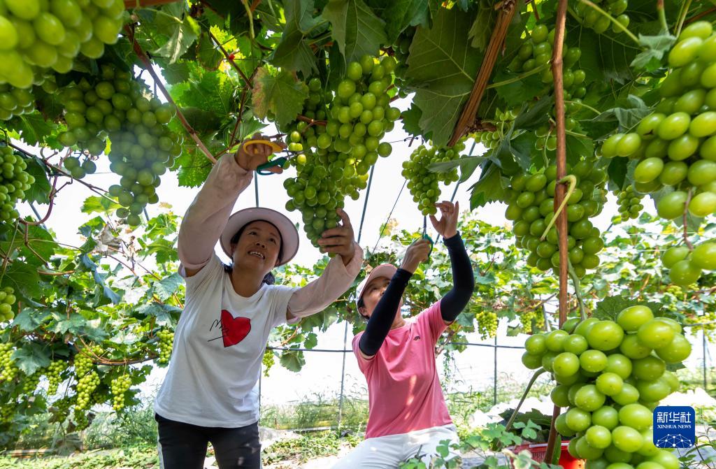 9月7日,村民在貴州省黔西市金碧鎮新蘭村葡萄種植基地采摘葡萄。