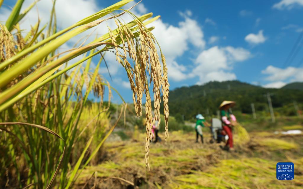 9月6日,村民在貴州省都勻市勻東鎮馬寨村稻田里收割水稻。