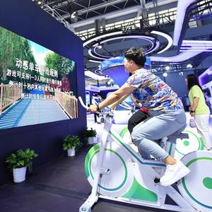 9月7日,參觀(guān)者在2023中國國際數字經(jīng)濟博覽會(huì )上體驗動(dòng)感單車(chē)。