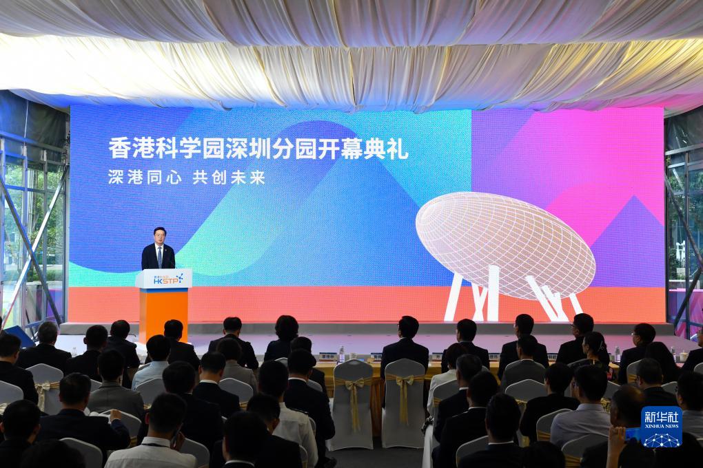 9月7日拍攝的河套深港科技創(chuàng )新合作區深圳園區內的香港科學(xué)園深圳分園開(kāi)幕典禮現場(chǎng)。