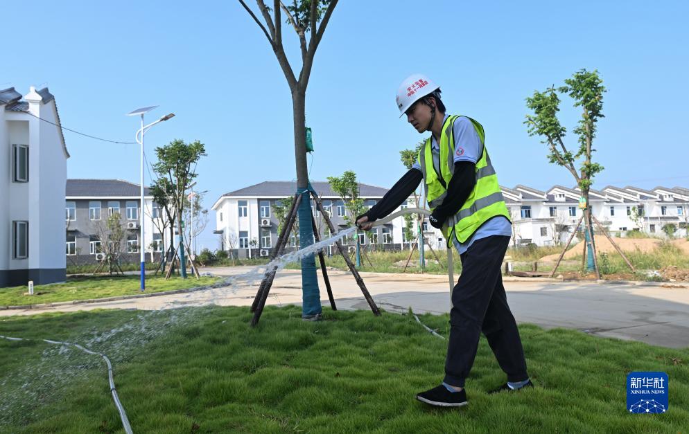 9月7日,帥店新社區施工方中鐵十一局工人在對綠化進(jìn)行養護。