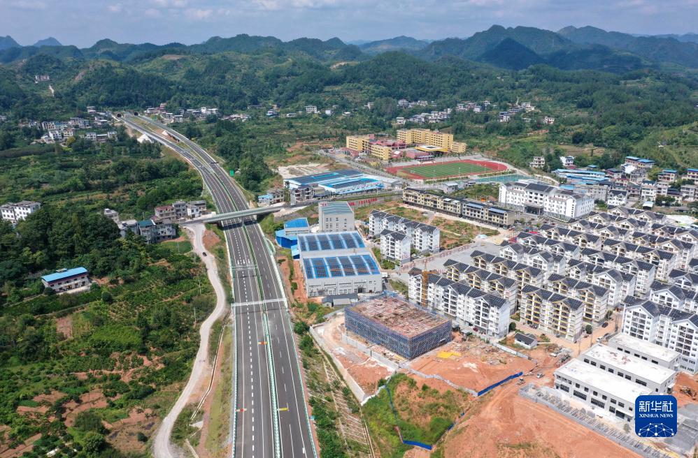 9月7日拍攝的湖北省宣恩縣李家河鎮一易地扶貧安置小區旁的宣咸高速路段(無(wú)人機照片)。