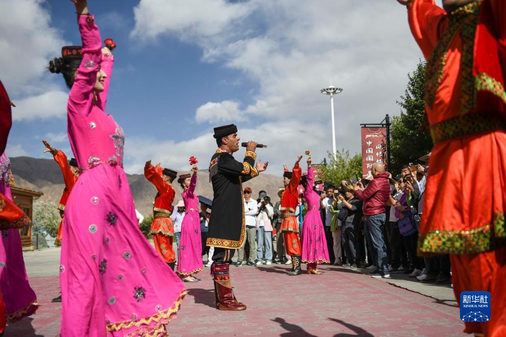 在新疆塔縣帕米爾旅游區游客服務(wù)中心,拜合提亞爾·居馬汗為游客們演唱《花兒為什么這樣紅》(9月4日攝)。