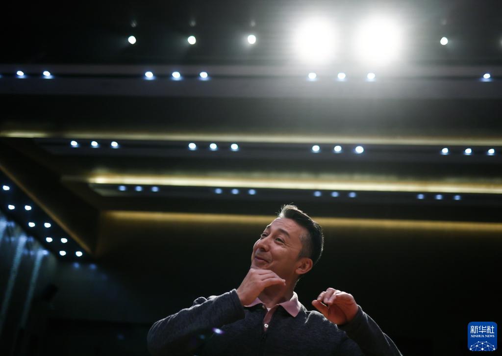 新疆藝術(shù)劇院歌舞團再比江·阿地力導演在塔縣文化服務(wù)中心劇場(chǎng)指揮演員排練(9月4日攝)。新華社記者 蘭紅光 攝