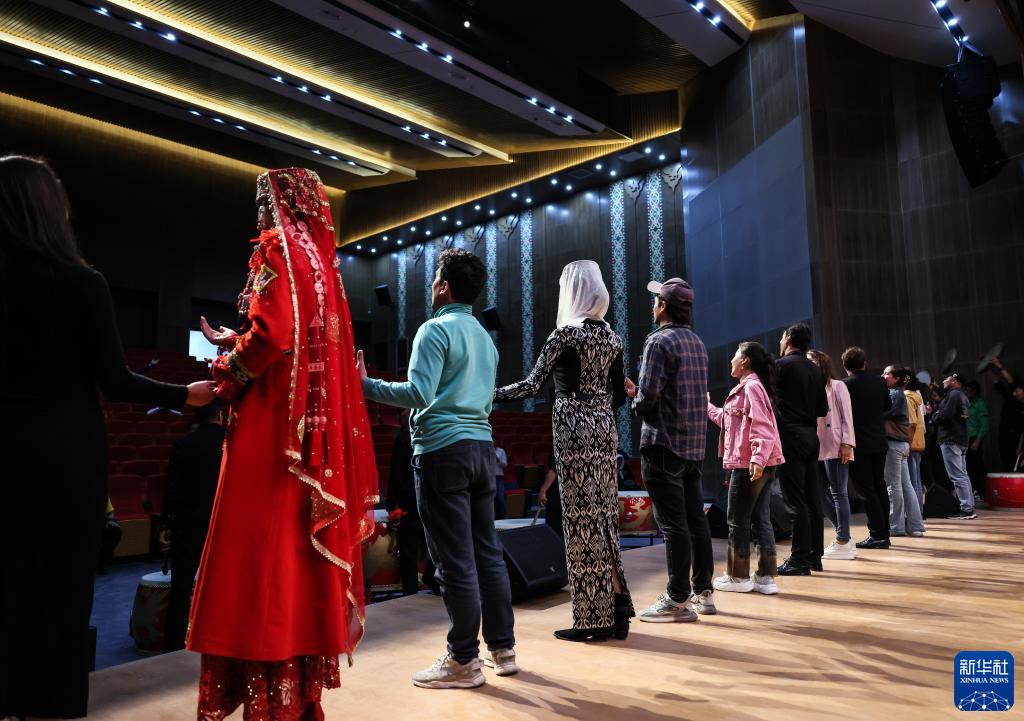 新疆塔縣歌唱演員在排練“帕米爾之聲·2023第二屆國際民族音樂(lè )節”晚會(huì )節目《我和我的祖國》(9月4日攝)。新華社記者 蘭紅光 攝