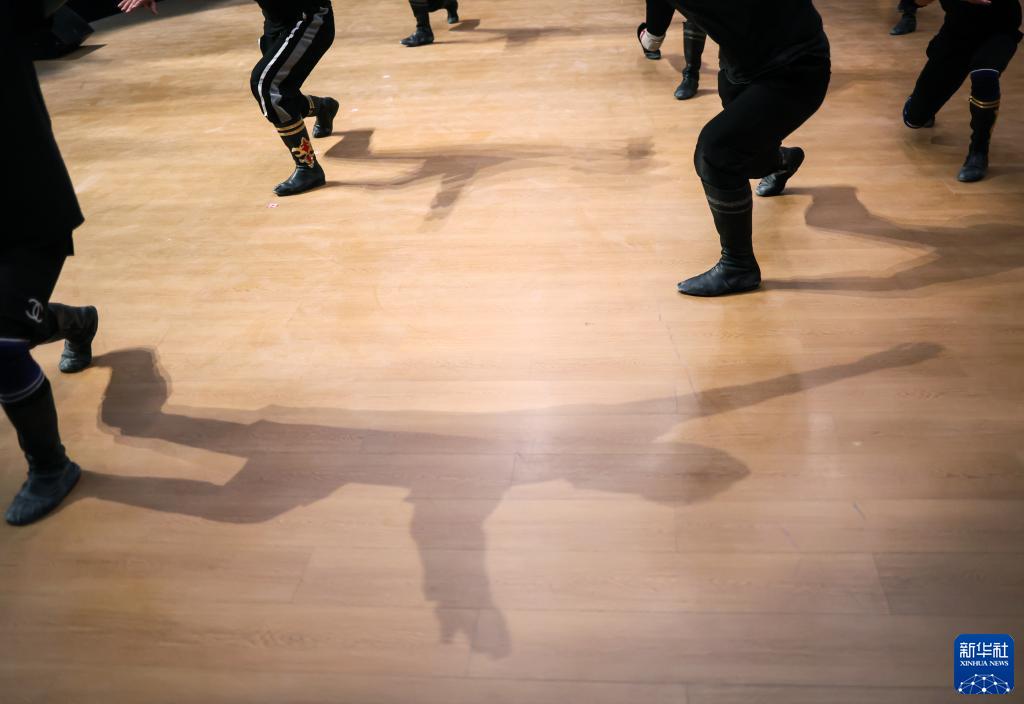 新疆塔縣文工團舞蹈演員們在排練舞蹈節目《彈起心愛(ài)的庫木孜》(9月4日攝)。新華社記者 蘭紅光 攝
