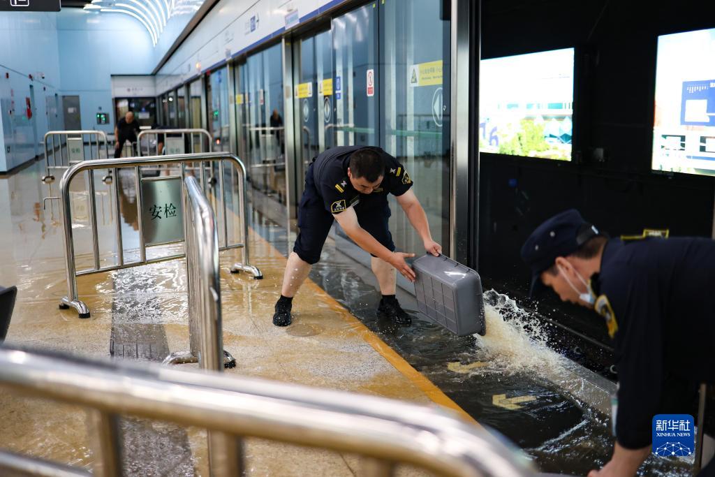 9月7日,在位于深圳市龍崗區的深圳地鐵16號線(xiàn)黃閣坑站,工作人員清理積水。