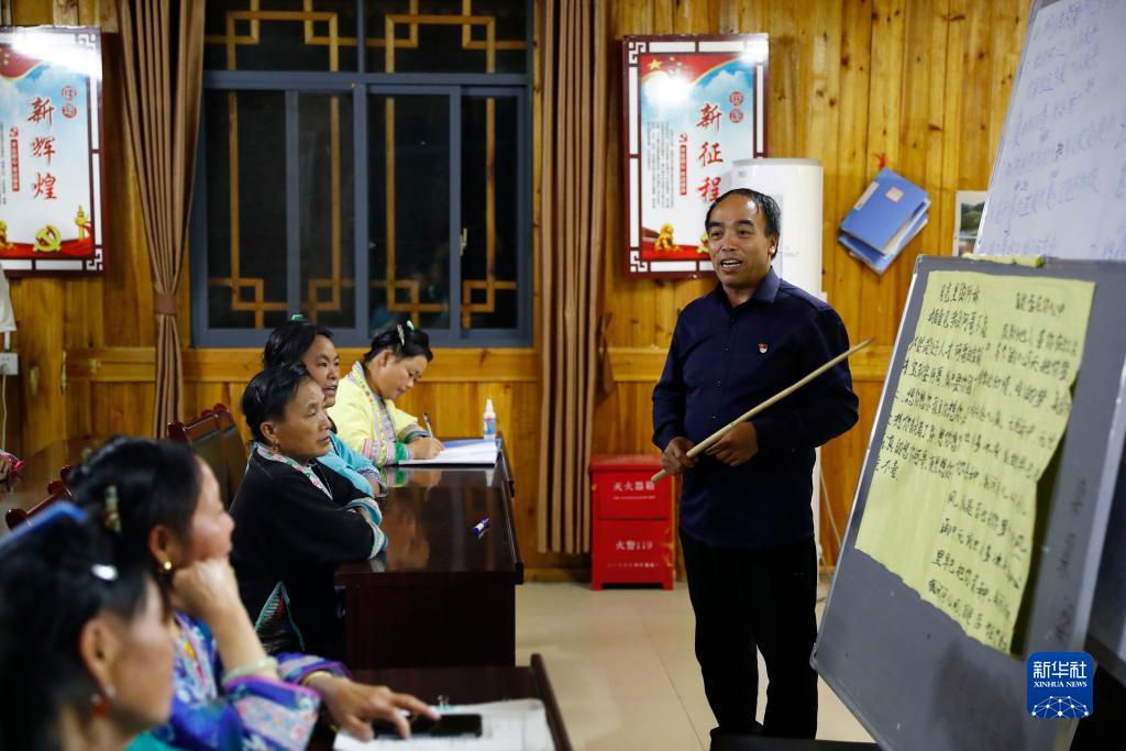 在烏英苗寨婦女夜校,潘先鋒在給婦女們上課(2023年8月30日攝)。