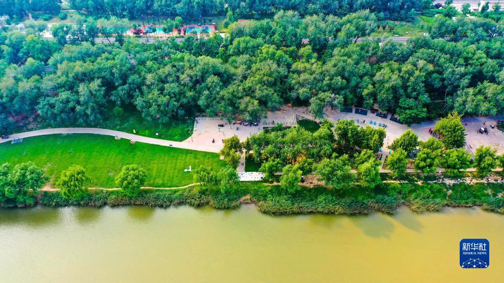這是9月7日拍攝的德州市錦繡川沿河綠化景觀(guān)(無(wú)人機照片)。