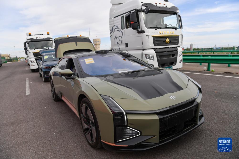 這是在霍爾果斯公路口岸等待出口的國產(chǎn)新能源汽車(chē)(9月6日攝)。