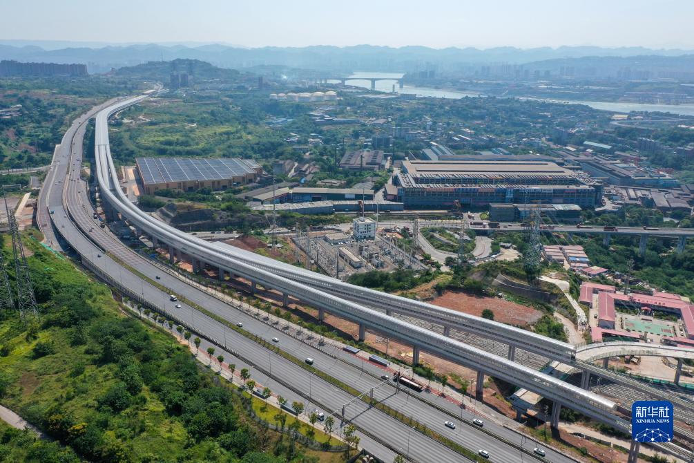 這是9月8日拍攝的重慶軌道交通18號線(xiàn)(無(wú)人機照片)。