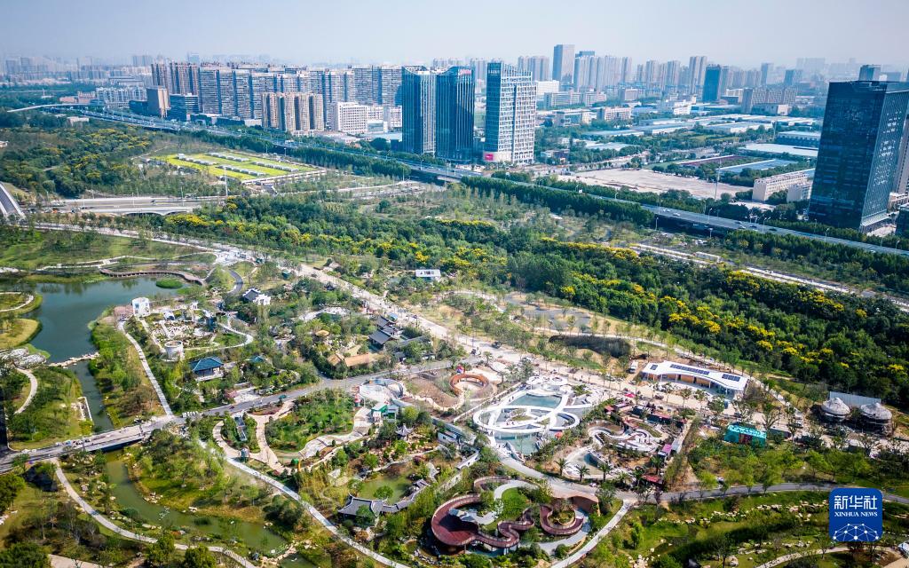 9月8日拍攝合肥園博園中的城市園(無(wú)人機照片)。