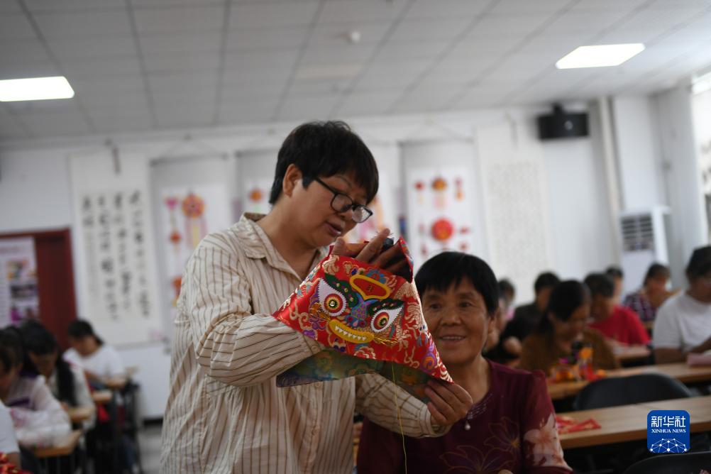 9月8日,在寶雞西秦刺繡文化產(chǎn)業(yè)園,千陽(yáng)繼紅職業(yè)技能培訓學(xué)校的校長(cháng)張繼紅(左)在指導繡娘繡制手工藝品。陜西千陽(yáng)縣是國家級非物質(zhì)文化遺產(chǎn)“西秦刺繡”的重要發(fā)祥地和傳承地。近年來(lái),千陽(yáng)縣將西秦刺繡作為助農增收的重要產(chǎn)業(yè),推動(dòng)非遺項目產(chǎn)業(yè)化發(fā)展,助力鄉村振興。