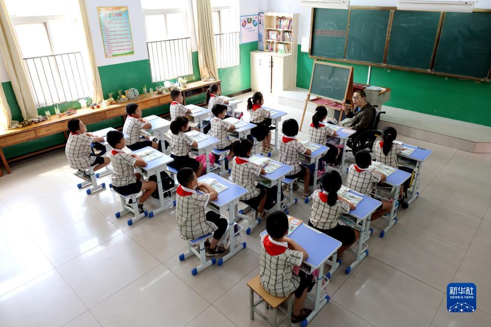 今年秋季開(kāi)學(xué),除了四年級英語(yǔ)、美術(shù)課外,楊季剛還負責一、二年級書(shū)法和閱讀課教學(xué),參與學(xué)校節假日值班等工作。他用積攢的獎金和慰問(wèn)金購買(mǎi)了學(xué)生們喜愛(ài)的讀物,建立“楊老師流動(dòng)圖書(shū)角”,設立讀書(shū)獎勵基金,激勵學(xué)生養成愛(ài)讀書(shū)、讀好書(shū)的習慣。新華社發(fā)(孫中喆攝)