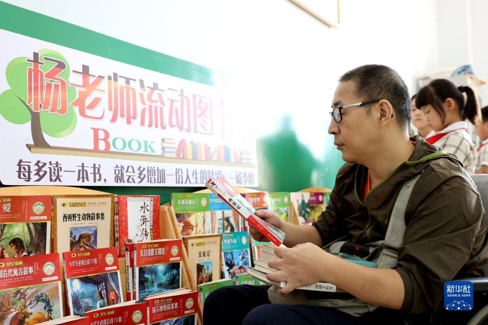 今年秋季開(kāi)學(xué),除了四年級英語(yǔ)、美術(shù)課外,楊季剛還負責一、二年級書(shū)法和閱讀課教學(xué),參與學(xué)校節假日值班等工作。他用積攢的獎金和慰問(wèn)金購買(mǎi)了學(xué)生們喜愛(ài)的讀物,建立“楊老師流動(dòng)圖書(shū)角”,設立讀書(shū)獎勵基金,激勵學(xué)生養成愛(ài)讀書(shū)、讀好書(shū)的習慣。新華社發(fā)(孫中喆攝)