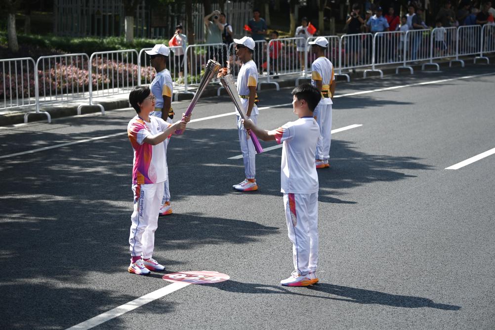 當日,杭州亞運會(huì )火炬在湖州傳遞。
